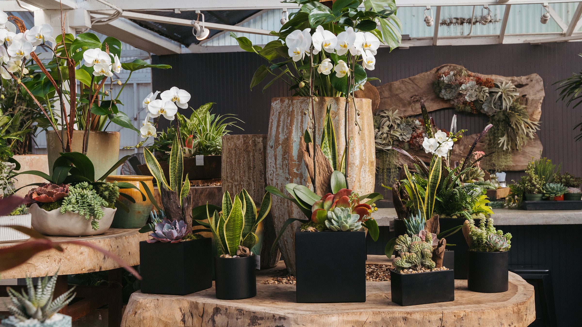 Our Arrangement Bar™allows you to work with our designers to craft custom real + faux plant arrangements for any space. While all pieces are made at our Culver City store, you can place an order at any location.