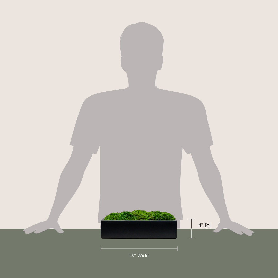 A modern, minimal centerpiece from our Arrangement Bar. Sculptural mood moss is layered in a matte black container for a clean, architectural look, perfect for adding quiet texture to any styled surface.